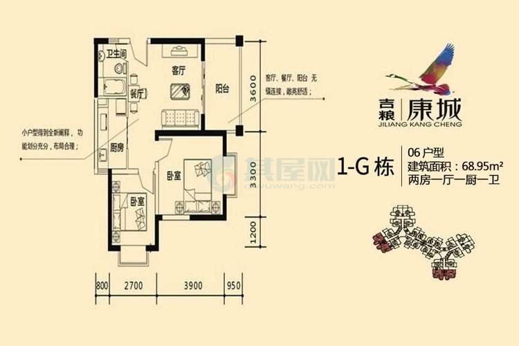 1-G栋 06户型 建面68.95平 两房一厅