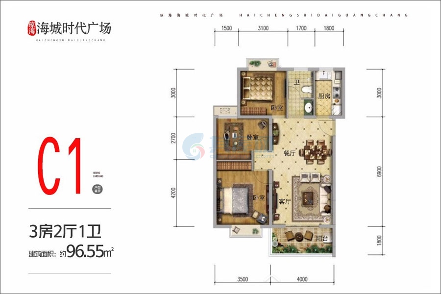 琼海海城时代广场建面71-80平两房,折后价11648元/㎡起
