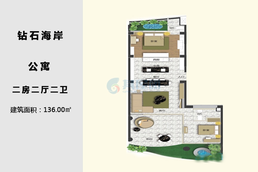 融创钻石海岸二期复式楼建面253-261平米三房,融创钻石海岸总价1300-2000万/套;融创钻石海岸平层公寓建面为473-480平米六房,融创钻石海岸总价3600-3800万/套。