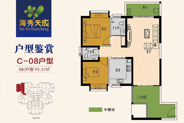 海秀天成94.42平米(建筑面积)三房两厅(建筑面积:94.42㎡)