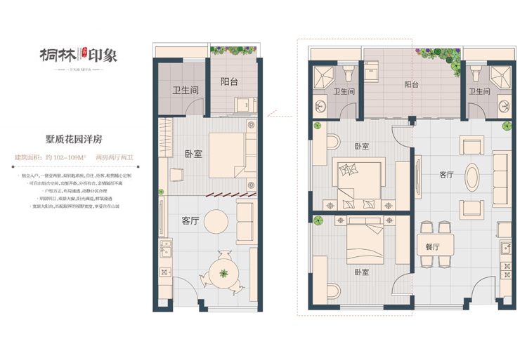 两房两厅102平米(建面)(建筑面积:102㎡)