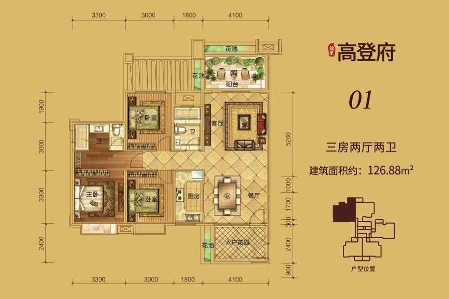 通莱高登府江景美宅推出3套房源,建面为118.38-119.74平三房户型,单价约15200元/平,总价178-182万/套