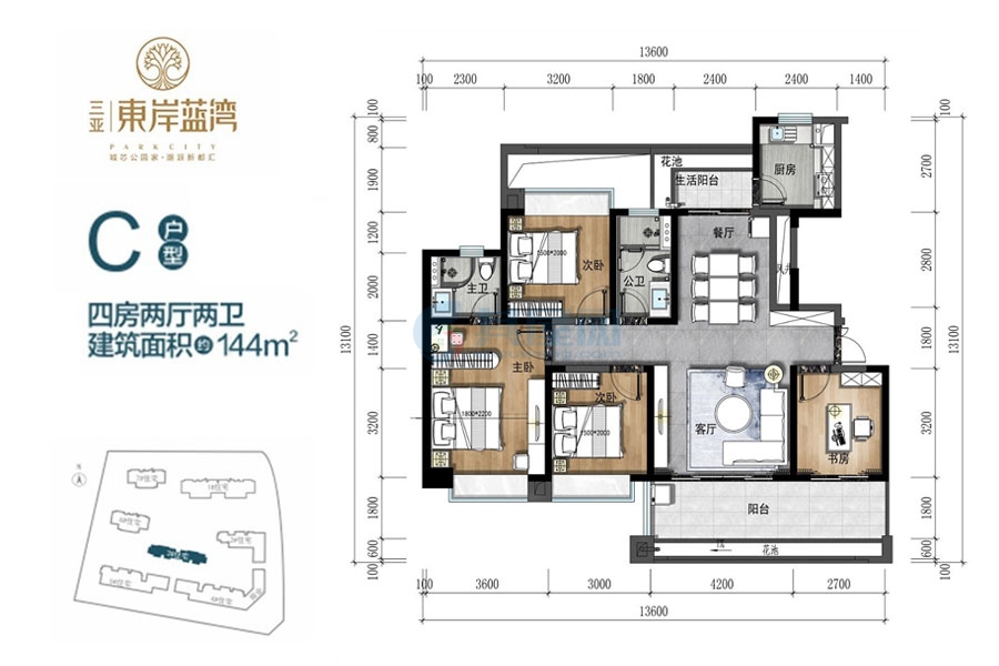 三亚东岸蓝湾住宅房源在售,在售建面102-143平米三至四房户型,均价26000元/平米。