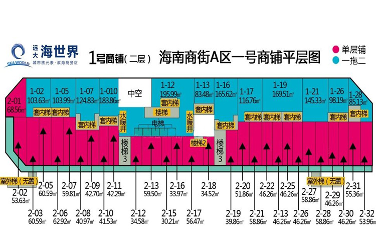 远大购物广场铂金公寓在售 ,建面为47-102平米一至两房户型,单价约13933元/平