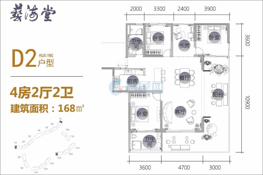 D2户型-建面约168㎡-四房两厅两卫(建筑面积:168㎡)