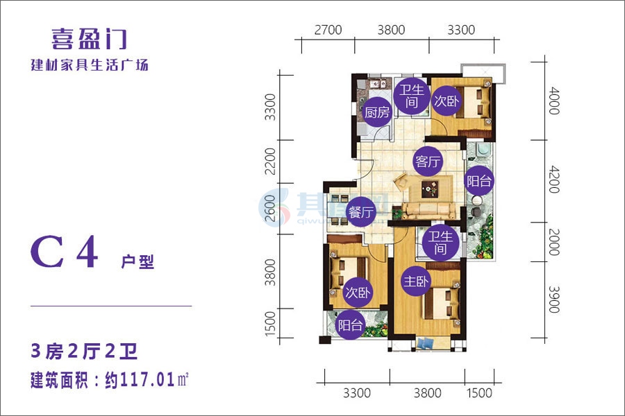 C4户型-建面约117.01㎡-3房2厅2卫(建筑面积:117.01㎡)