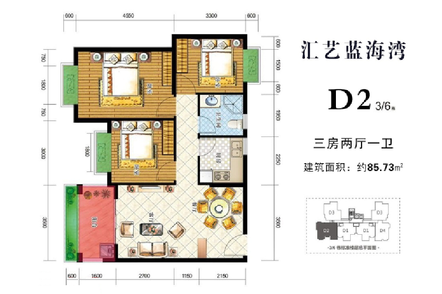 3房2厅1卫(建筑面积:85.73㎡)