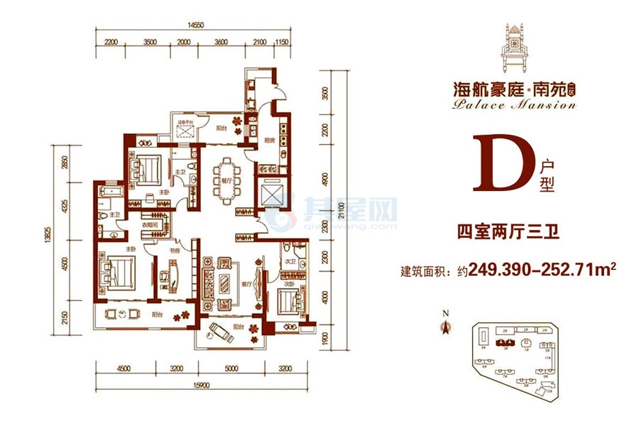 D户型-建面约249.39平米(建筑面积)-四房两厅(建筑面积:249.39㎡)