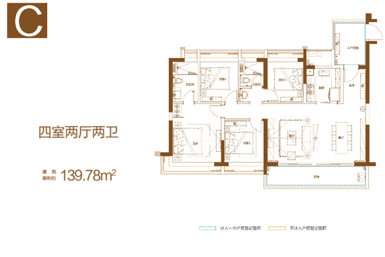 C户型-四房两厅两卫-建筑面积约139.78㎡
