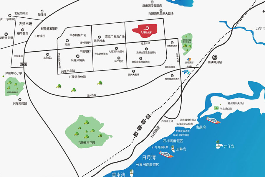 海南房产网资讯 万宁·香江温泉人家:推出建面约102-122㎡花园洋房 温泉入户,邀君鉴赏。项目周边配套涵盖大润发购物超市、景田农贸市场(新鲜蔬果)、兴隆温泉公园(健身、垂钓)、兴隆商业风情街(吃喝玩乐购)。