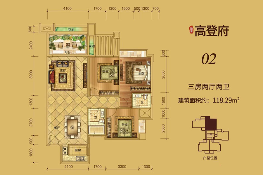 主力户型:建面约117㎡、118㎡、119㎡、124㎡、126㎡板塔结合。