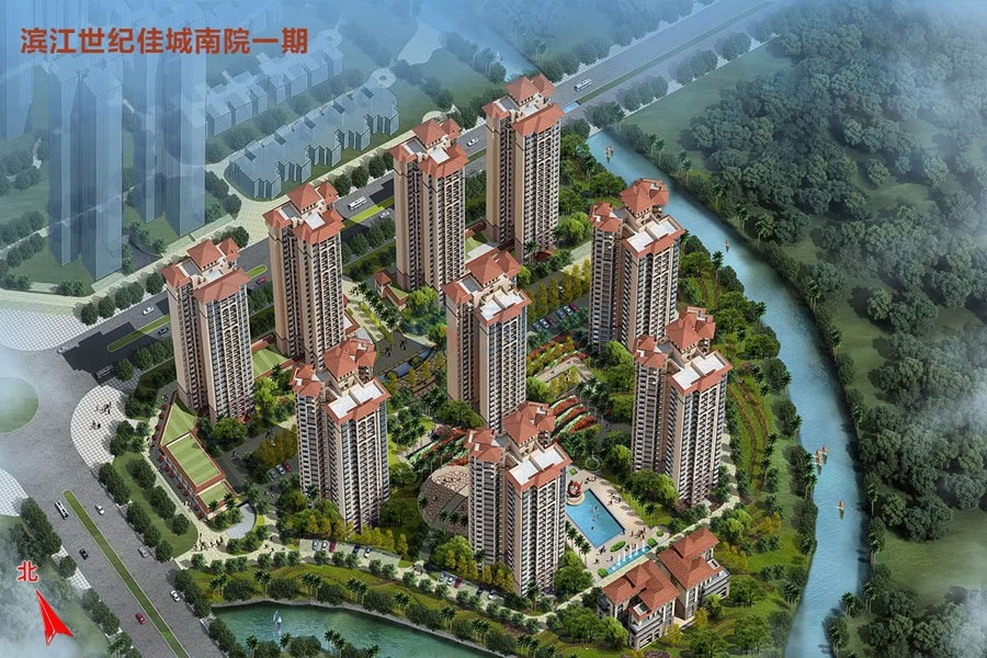 滨江世纪佳城,坐落于海口滨江地段,向北直面南渡江,向东俯瞰响水河,南依琼州大桥,西临政府规划小区。规划占地212亩,总建筑面积80万㎡,容积率仅2.48,绿化率高达40%。 经典Art-Deco建筑风格、朝南朝北舒适户型、观景阳台和飘窗、户户方正、全明设计等。