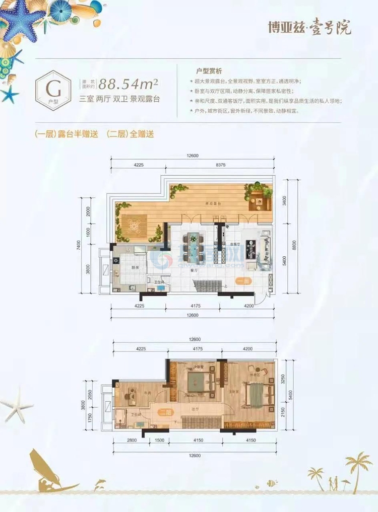 · G户型,三房两厅两卫,观景露台