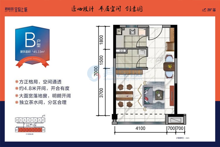 创新都荟科技聚合体,坐拥商业投资与文旅度假双重价值。碧桂园匠心精准勘测儋州风向及阳光角度,打造44-68m?垂直创享云空间,灵动多变,能养心能会客,小户型低门槛。