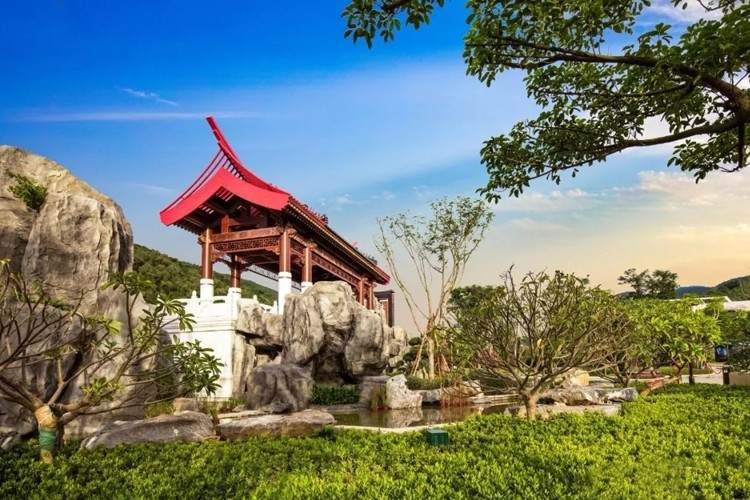 项目选址于2万亩原始雨林前、山脉溪谷之间,以一座山的厚重和绿意盎然,还原生活从容的姿态;配以每一个院落中,都用里弄空间贯穿整个府院的景观脉络,融入中式园林的艺术手法和四季植被,让栖居在这里的心情变得沉静。