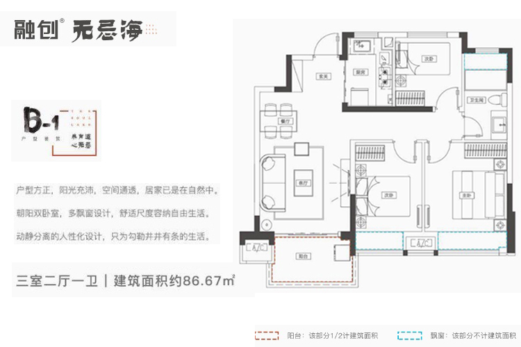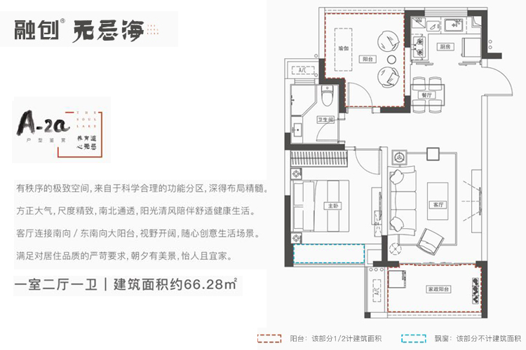 【户型面积】建面为66.28-72.41平米 一房至两房户型