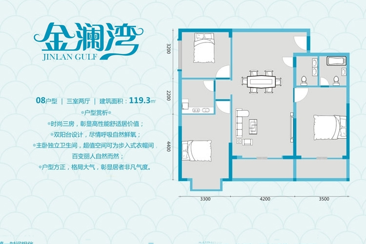 • 金澜湾08户型图3房2厅建面119.30㎡