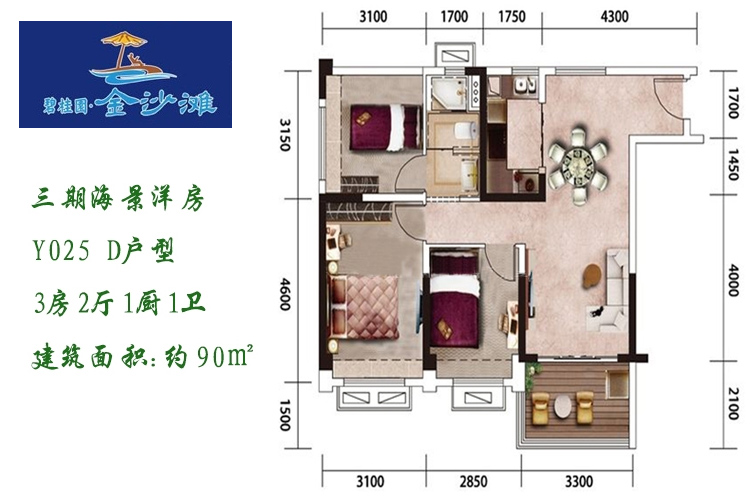 碧桂园金沙滩90平米三房户型图