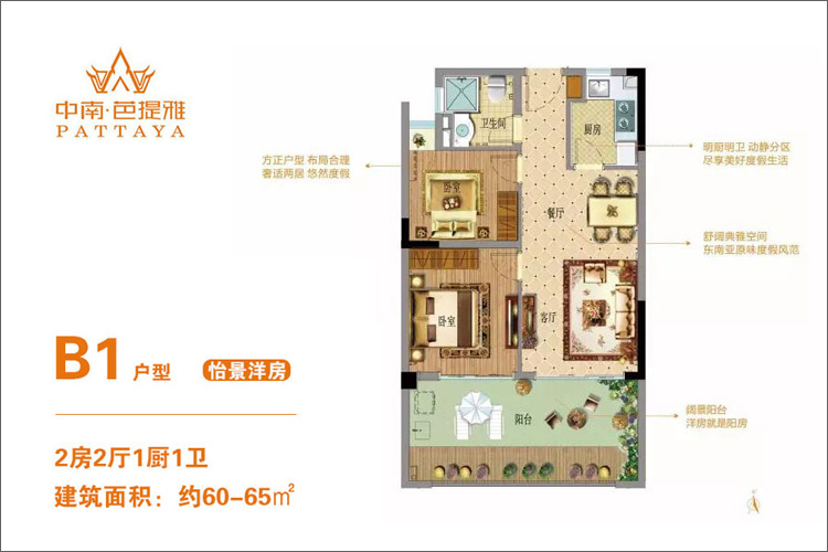 海南房产网新资讯 中南芭提雅小洋房推出8套小户型,建面为62.21平米,一口价104-109万/套。