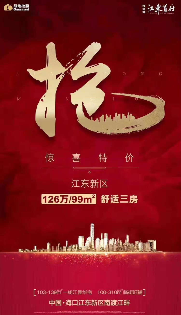 其屋网资讯 海口绿地城江东首府,据守江东新区重要战略要地,择址南渡江畔,三大公园环抱之草木葳蕤处;于空港门户,路网通达便捷之地;以生态人居理念,将自然与人居艺术完美融合,精筑一座高品质的海派滨江生活府邸。从户型规划,到装修选材无不精益求精,考究打磨每一个细节,追求“智能安全、舒适健康、人性化设计”。