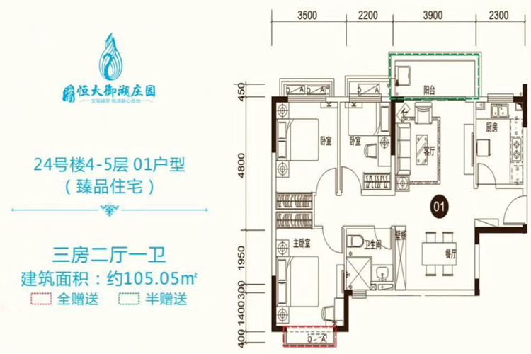 【户型面积】建面为69.78-105.54平米二至三房户型