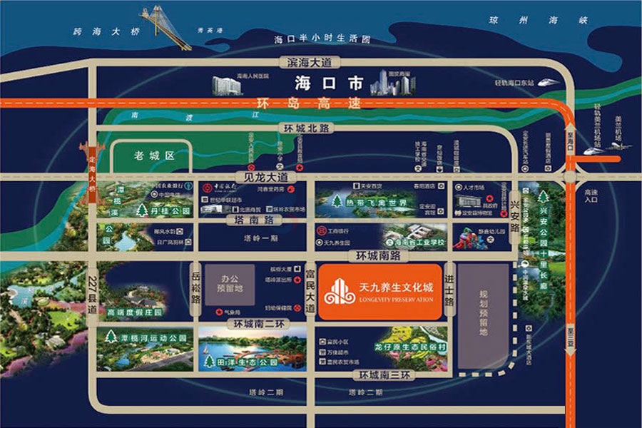海南房产网资讯 定安·天九养生文化城项目是海南定安天九美食文化广场有限公司投资开发的一个大型城市综合社区,位于定安县塔岭新区环城南路138号,总占地面积1460亩,分