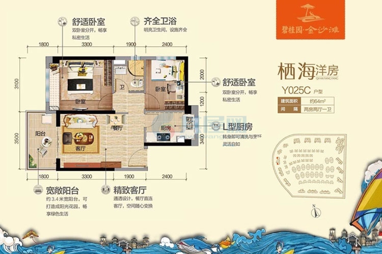 临高·碧桂园金沙滩,一线海景,建面约66-104㎡,特价8032元/平起