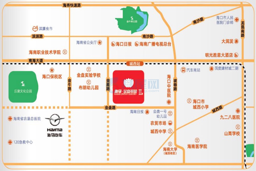 海南房产网新资讯 海口·海马金盘花园占地面积约10000平方米,总建筑面积47097平方米,小区由2栋30层高层住宅和3层的商业风情街组成。户型设计有一房两厅、两房两