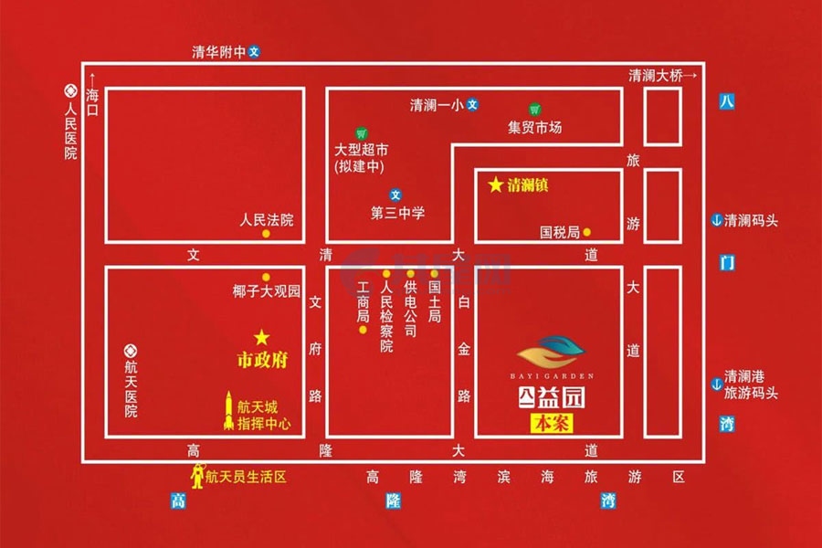 海南房产网资讯 八一益园位于清澜开发区,清澜开发区是海南屈指可数的城市湾区,是集行政、居住、滨海休闲度假为一体的新城区,目前市政府、公、检、法等行政单位已入驻。一期项