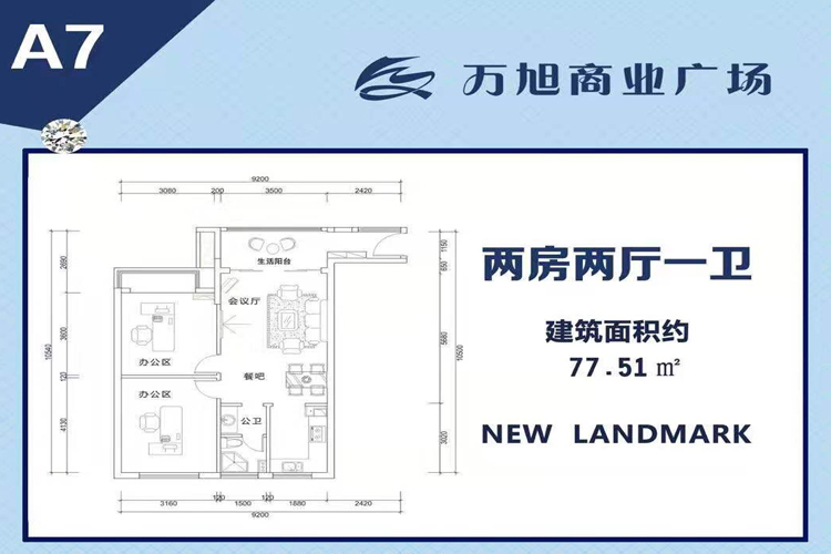 万旭商业广场两房户型 建面77.51㎡
